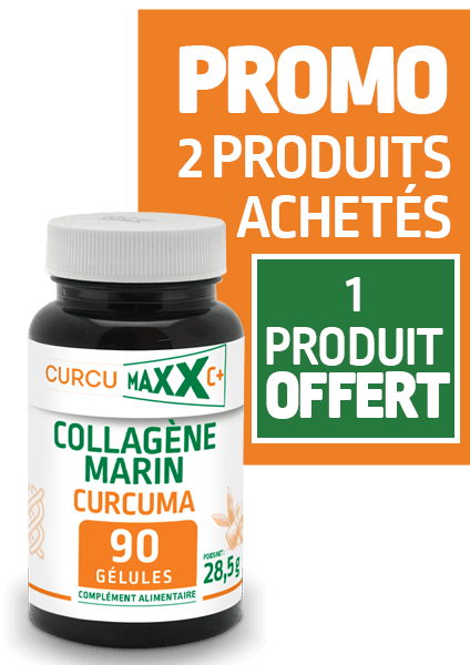 Curcuma longa : 159 mg dont curcuminoïdes (95%) : 151 mg dont curcumine : 105,7 mg. Collagène marin hydrolysat type I : 876 mg, gélule HPMC : 90 mg